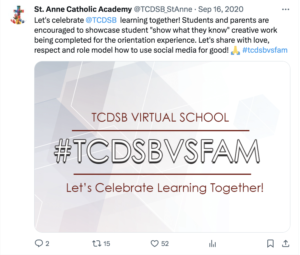 Co-Moderated a virtual faith day for staff, students and families. Coordinated K-12 Extra-Curricular programming for virtual students. Developed and moderated the hashtag #TCDSBVSFAMCo-Developed and moderated a K-12 Orientation Module for virtual students.